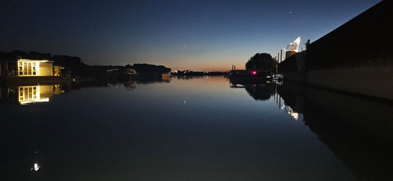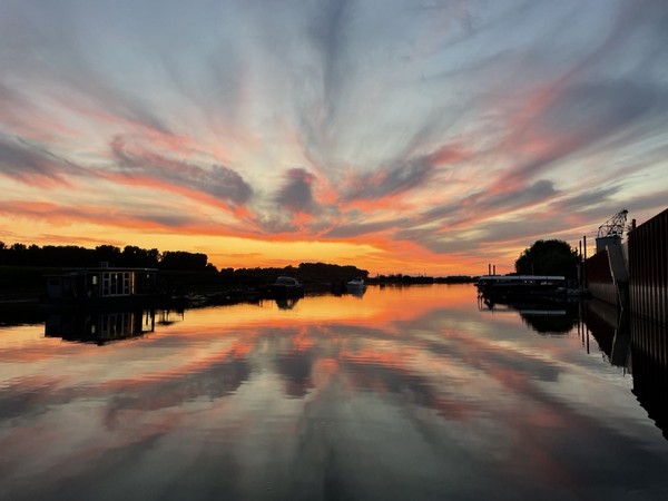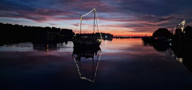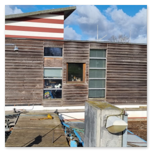 In unserem schwimmenden Clubhaus befinden sich sanitäre Anlagen sowie Küche und Terrasse. Unsere Terrasse nutzen wir gerne für gemeinsame Grillabende mit Ausblick auf den Rhein und wunderschöne Sonnenuntergänge. Auch Gäste sind hier herzlich willkommen!