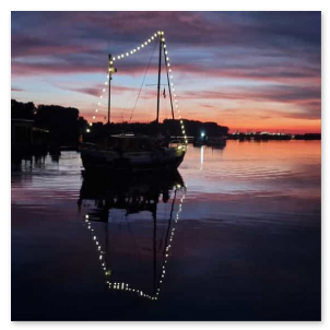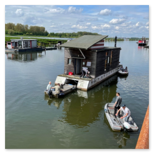 Unser schwimmendes Clubhaus lädt zum geselligen Beisammensein ein